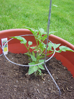 Okay, so she doesn’t look like much in this picture, but this was the day we brought her home (5/5). Lola, is our tomato plant. I have big dreams for her, to grow yummy tomatoes for my family to enjoy (I don’t eat tomatoes). The thing is, I don’t know what I’m doing. I haven’t grown a plant before, so I’m just watering her everyday and talking sweet to her. Oh, and trying to protect her from over eager toddlers wielding shovels.