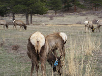 The elk were out in Estes Park, which encouraged me that we’d see some in RMNP, and we did. We stopped at Beaver Meadows Visitor Center, right outside the park to get our bearings. The man working in there offered the suggestion we go to Sprague Lake, an easy short hike for our little guys. We took him up on that, and found our way there. We settled at the picnic benches to eat out lunch, while the scrub jays hovered, watching to see if we’d leave them any crumbs (no dice birdies!)
