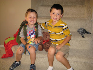 Elijah loves Kindergarten. He has had a few homework assignments, which he felt were not long enough. Slow down kid! You have years ahead to be saddled with too much homework. He’s made a few friends in his class, Bram & Cassie. I think last Friday was his best day ever, it was picture day, he got to buy popcorn and he was chosen to take home the class teddy bear, Bubba. In turn, we had to do something fun with Bubba and write about it in the Bubba book. We went to Color Me Mine and painted.